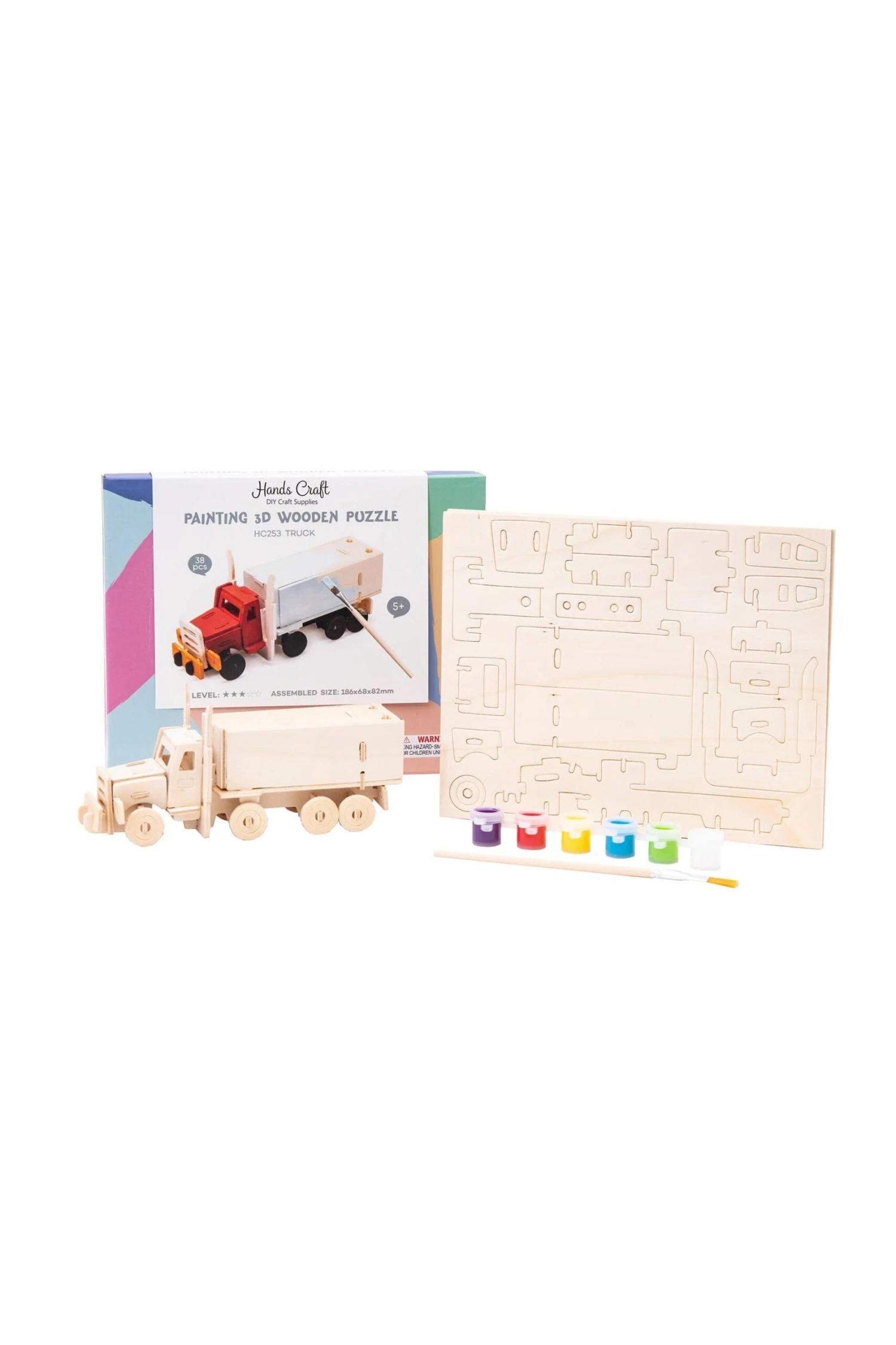 Make your own Truck with this stellar kit! Wood made from safe, high-quality, non-toxic, plywood. Great activity for both children and adults. Improves motor, cognitive, and emotional skills.