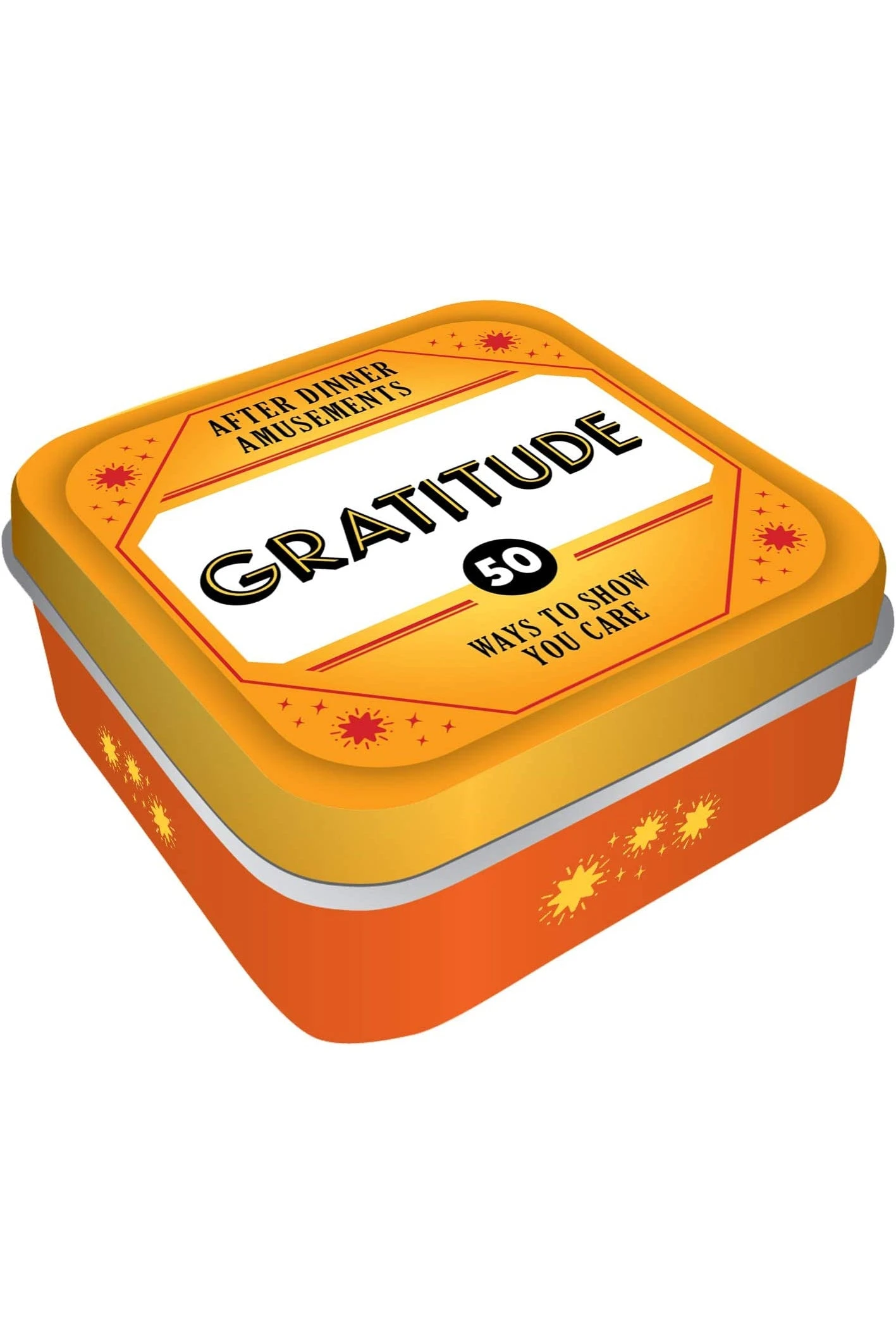 “Gratitude”- This humble tin is filled with 50 attitude-of-gratitude practices and prompts to inspire the whole family.