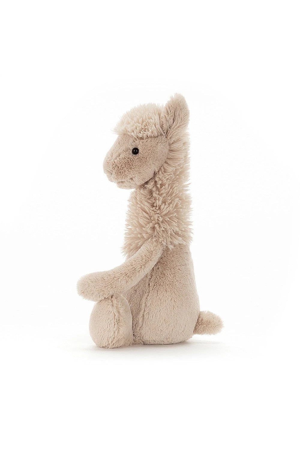 The Bashful Llama loves his mama! A sweet little guy with a soft tan cost, a scruffy mane atop his head and down his neck, perky ears and a small puffball tail.