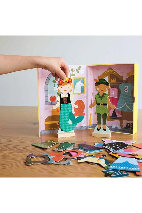 Help these friends get ready for a fun fashionable day in this in each Magnetic Dress Up Set. Each sturdy box houses two stand-up dolls with wooden stands.