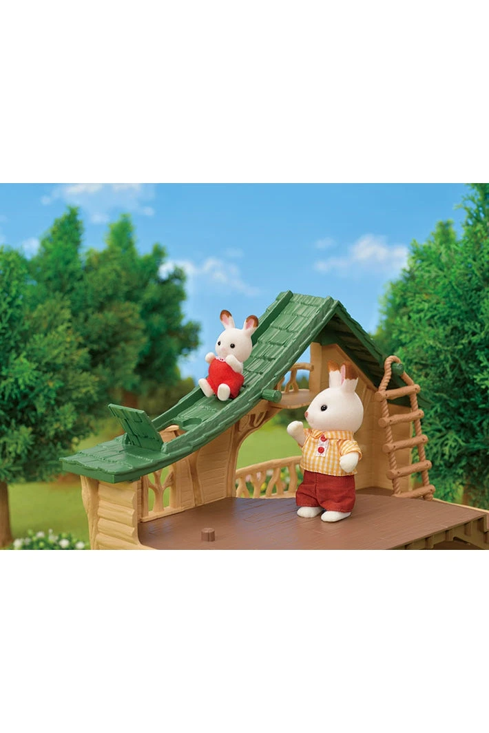 Lakeside Lodge comes with furniture and accessories. Have your figures cook at the wood-burning stove, eat at the dining table, or sleep in the hammock. The roof has a secret slide that only baby figures can play on.
