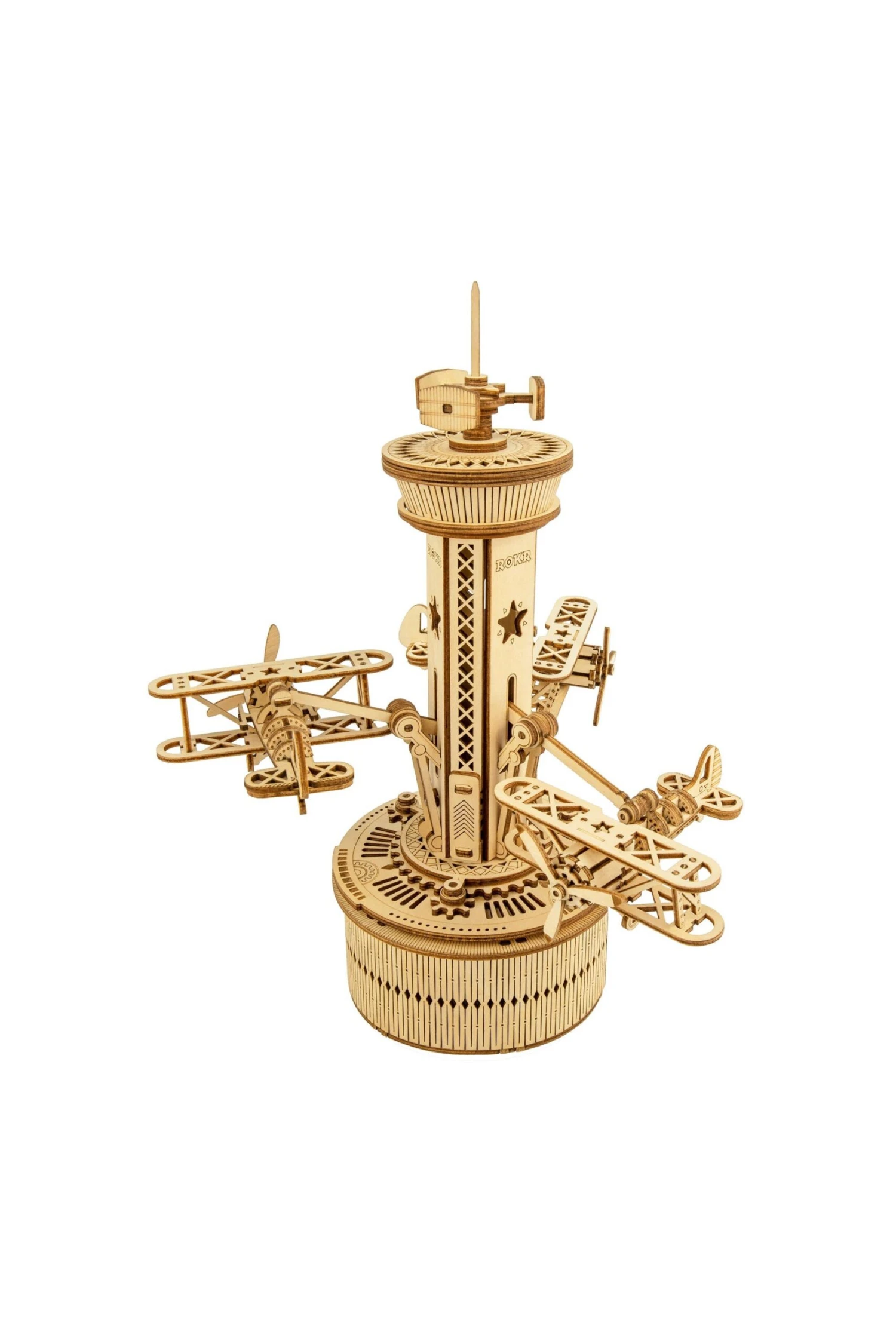 Make your own Airplane Control Tower with this awesome kit! A combination of an airport control tower and three rotating biplanes, this wind-up mechanical DIY music box plays to the melody of “IT’S A SMALL WORLD.” Great activity for both children and adults. Improves motor, cognitive, and emotional skills.