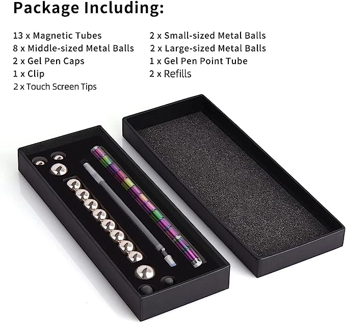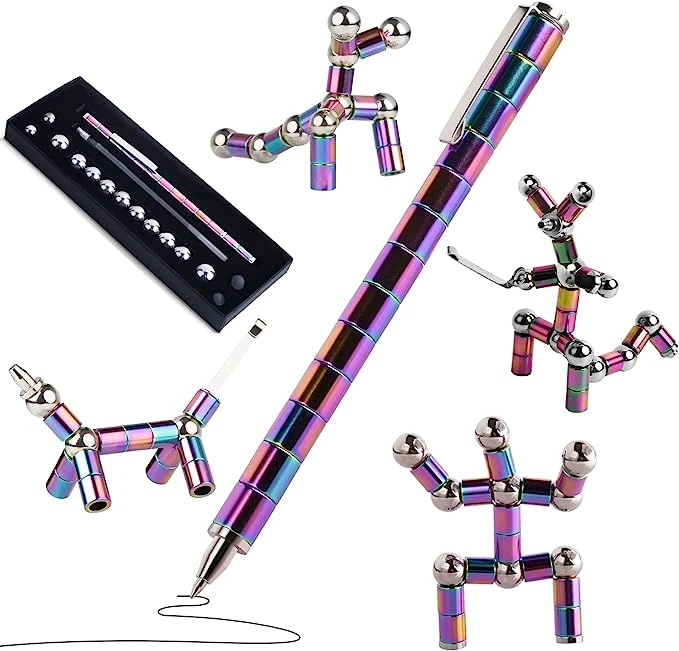 Multifunction Writing Instrument! This magnetic pen is not just a pen, also be a finger fidget toy. It can be rotated and transformed into a variety of creative, free combination, multiple and diverse plays.
