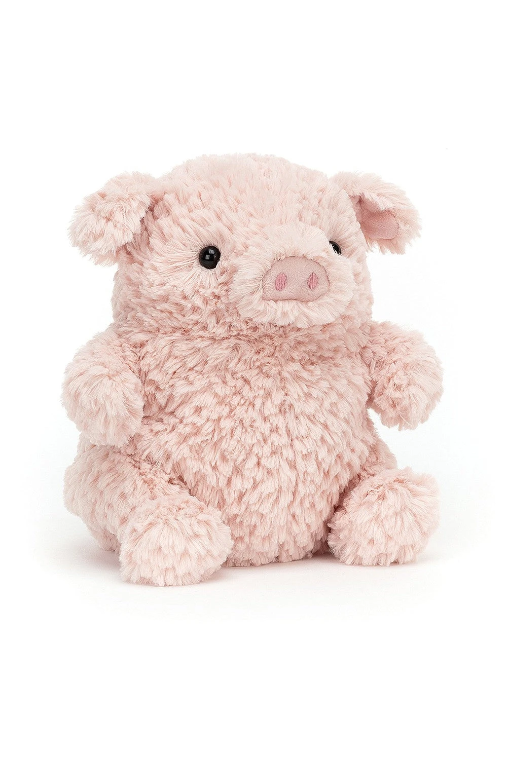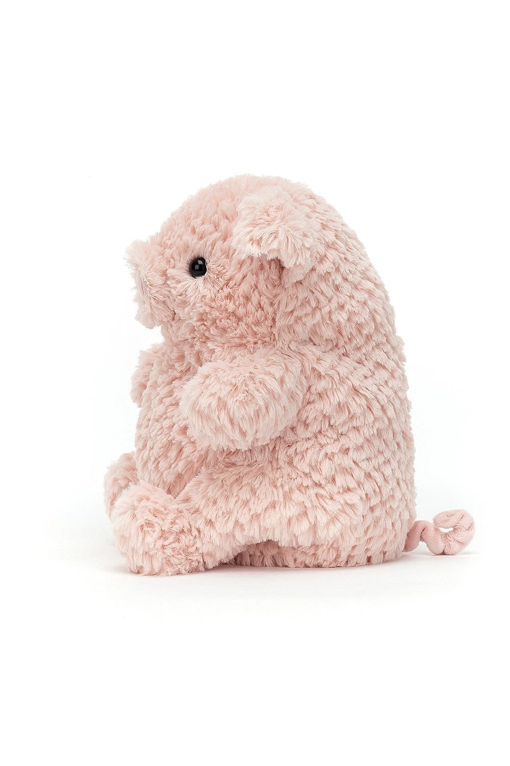 Flumpie Pig likes to stay up late watching action movies! A podgy little piggy in wobbly blancmange pink, with a cute curly tail and suedey snout – whom you might find hiding behind the sofa! Just dig them out, cuddle up … and pass the popcorn, please?