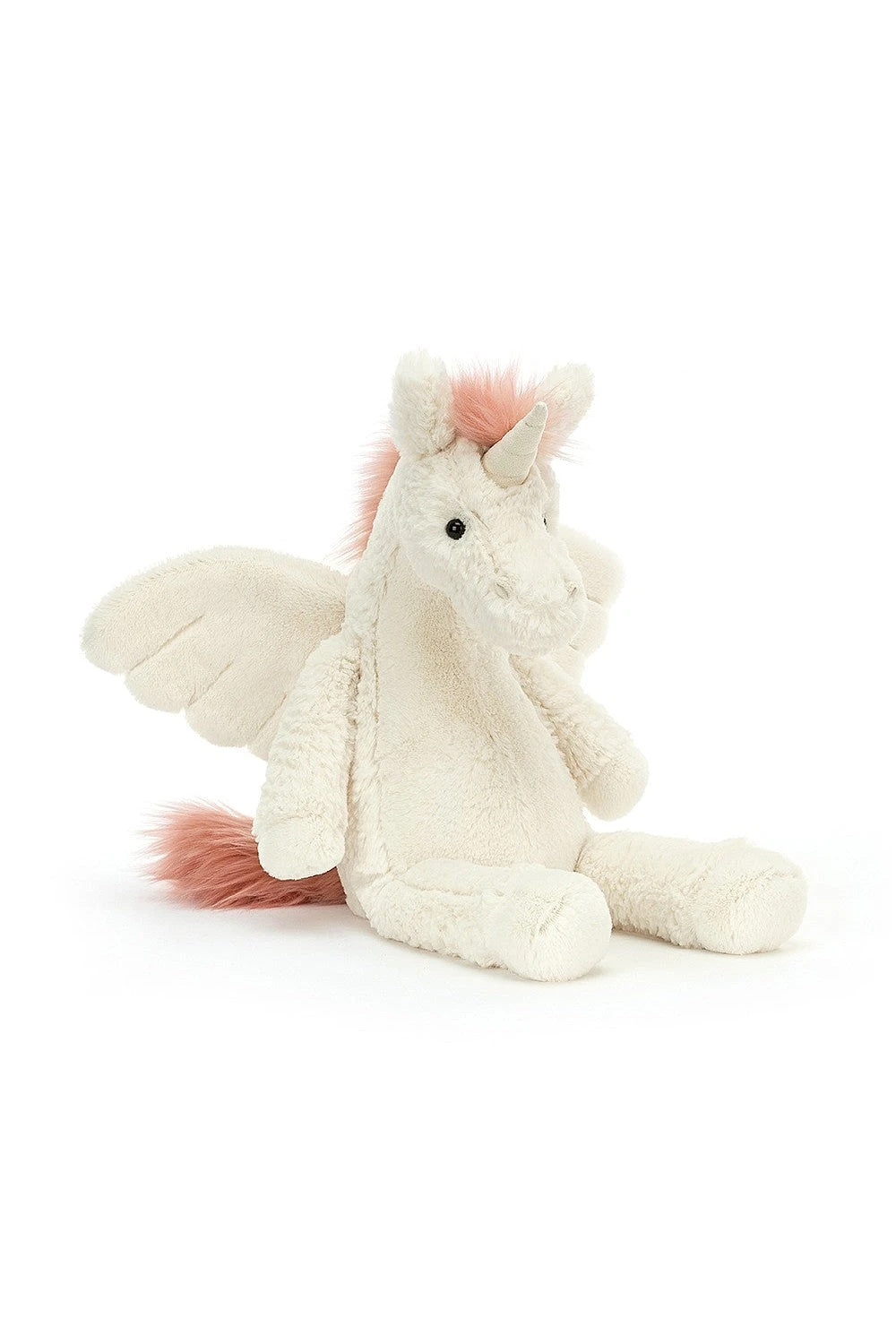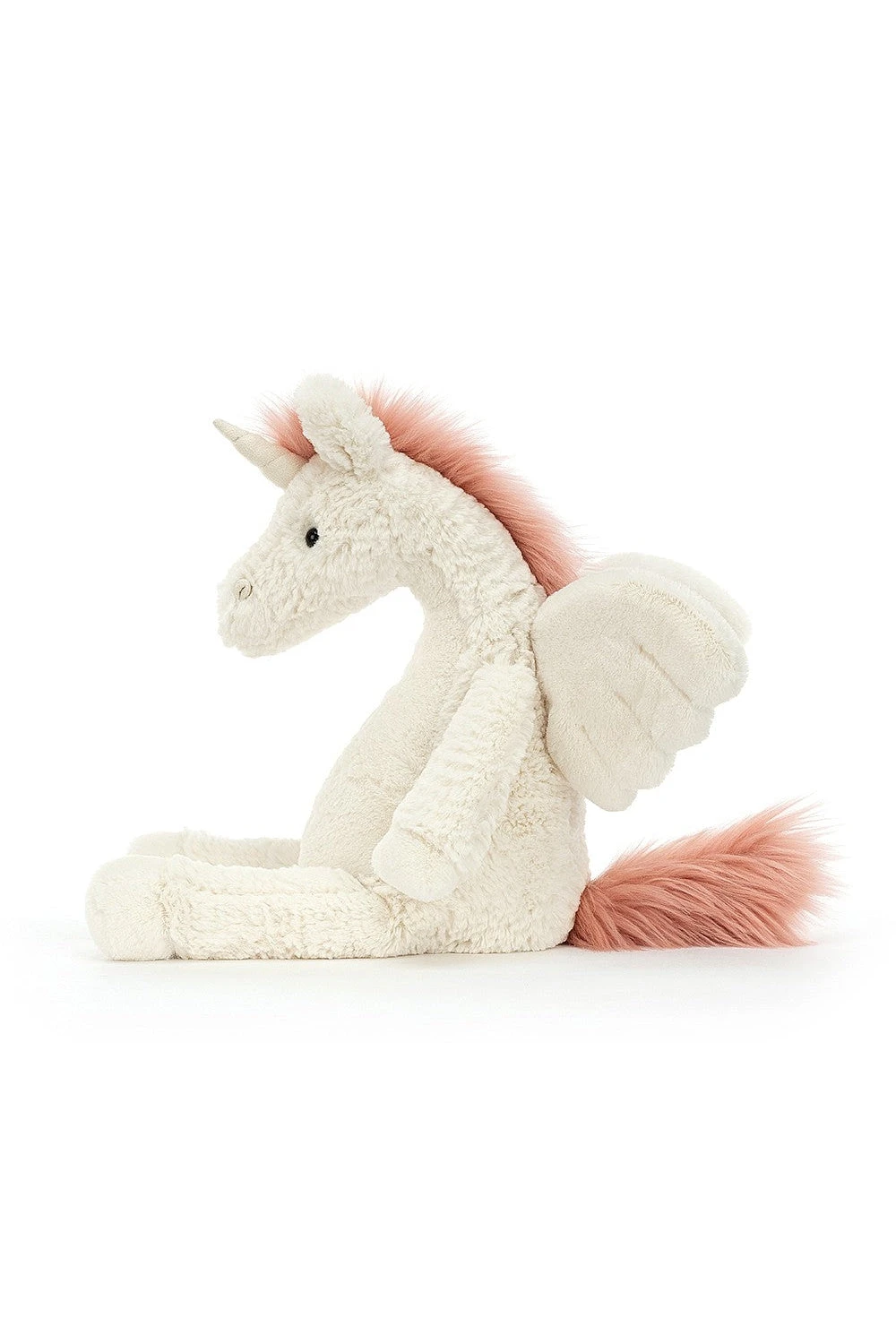 Lallagie Unicorn takes to the skies! A magical, marshmallow marvel with warm pink mane and magnificent rose-gold horn, rising up on fluffy wings and soft hooves. Make this legendary beastie your besty – let them lift you up and carry you into the clouds!