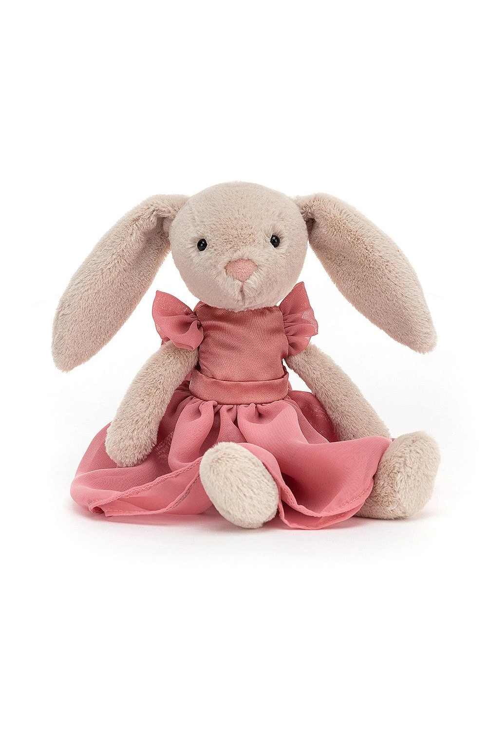 Lottie Bunny Party –Birthdays, festivals or grand royal dances – Lottie Bunny Party loves to dress up! This oatmeal bunny wears a layered chiffon gown, as soft and scrumptious as raspberry torte! With a satin sash, flutter sleeves and lopsy ears, Lottie’s the belle of the ball!