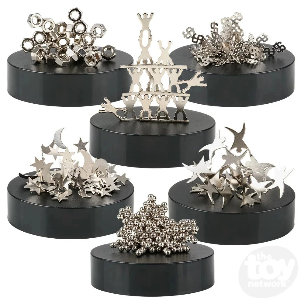 Make your own stress relieving creations with this 3.5″ Magnetic Sculpture Assortment. There are 6 different styles and you can collect them all! Styles include: ball, hex nut, acrobat, money, dancer, and moon & stars. Comes with a magnetic platform to stabilize sculptures while you work