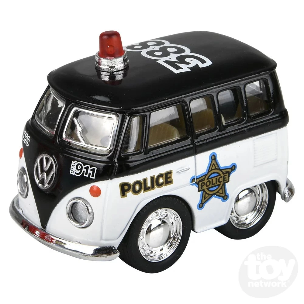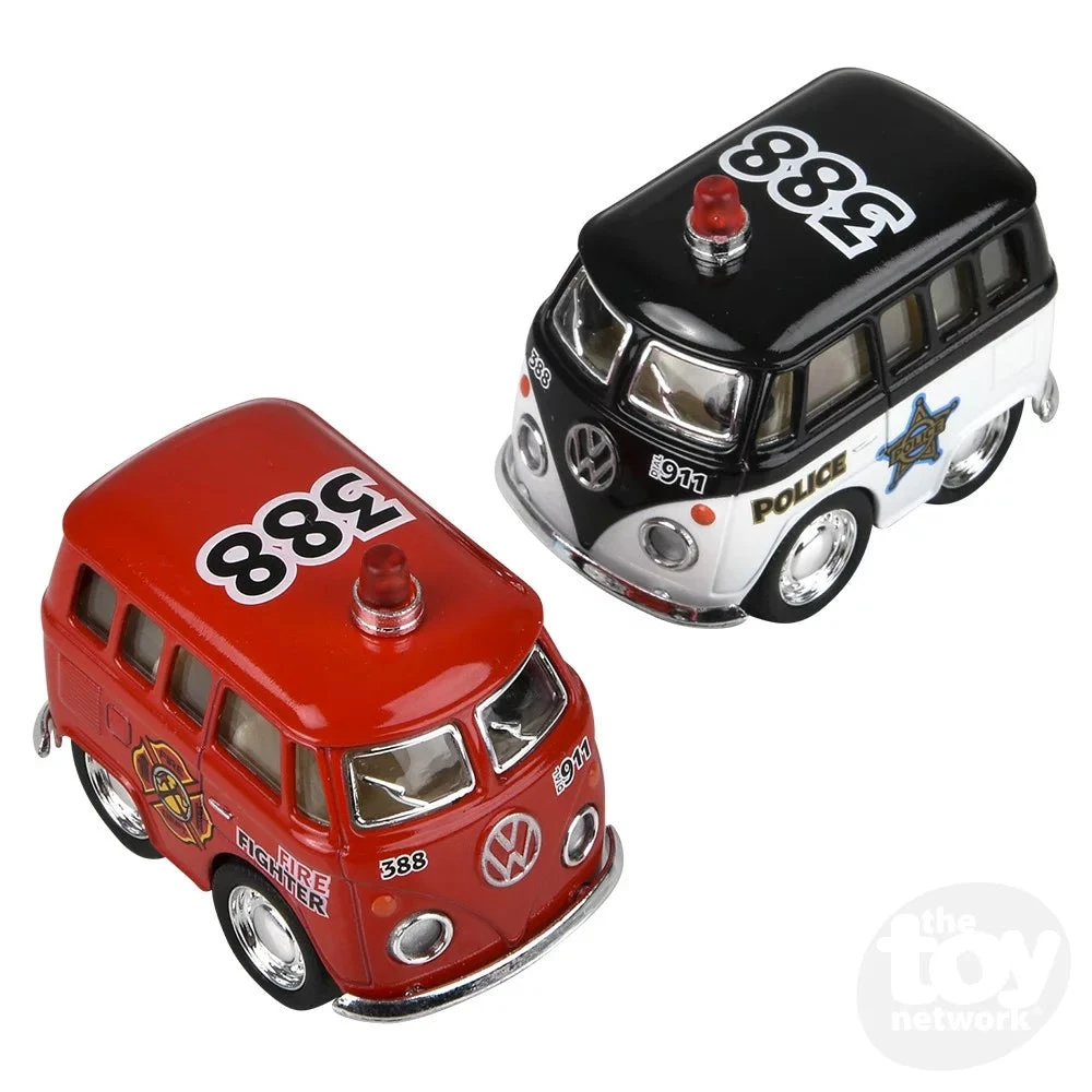 Our 2″ Diecast Pull Back VW Mini Police & Firefighter Buses are made from authentic diecast metal and feature a pull-back action. Available in multiple styles.