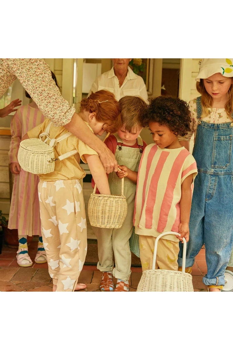 - This little woven basket bag is functional, adorable, and perfect for the little multi-taskers and adventurers alike.