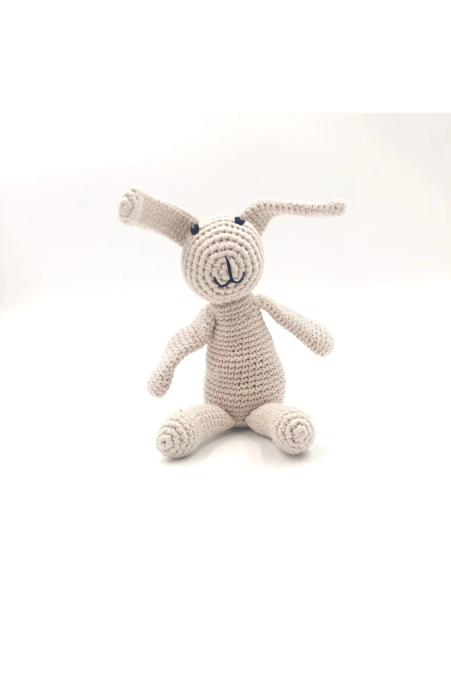 This sweet little bunny rattle is as cuddly as it looks. Lovingly handmade with buttery soft cotton yarn, this knit bunny rattle is designed to last for generations. Made for little hands to hold and jingle, this little rattle is ready to hop through a world of adventure with your little one.