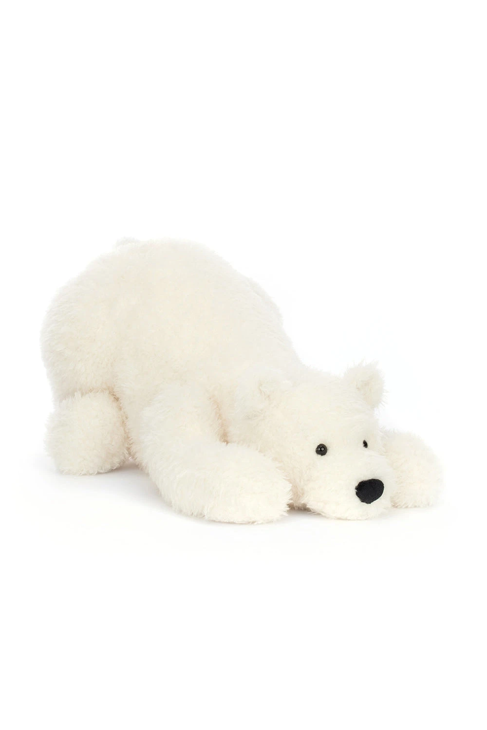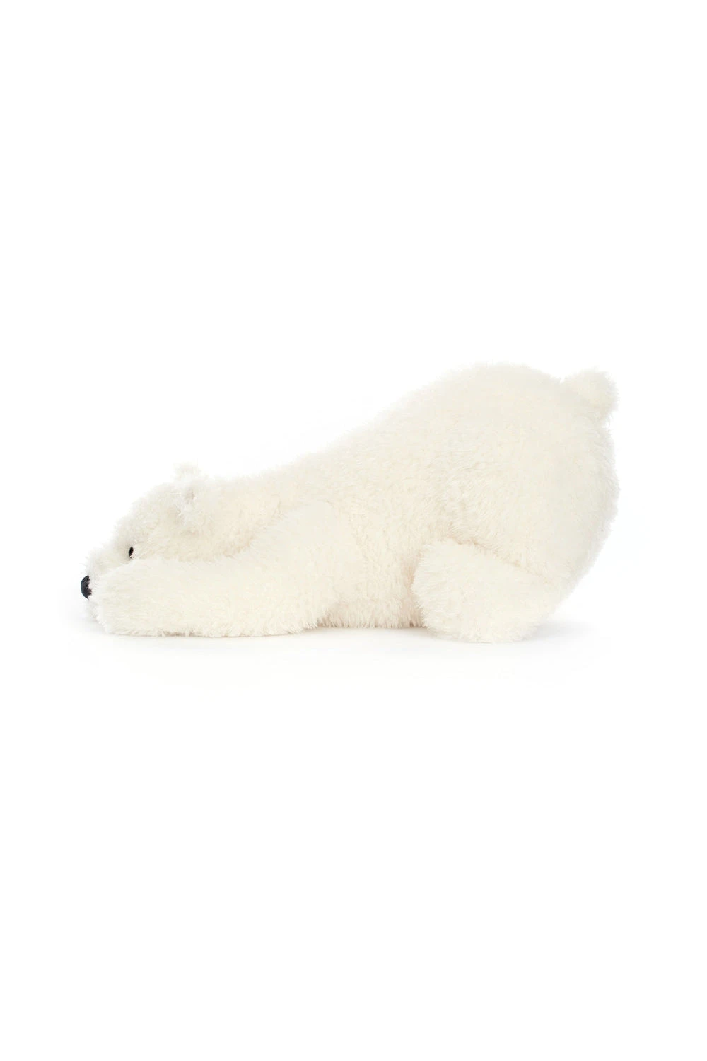 Nozzy Polar Bear just got in from a tussly, blustery blizzard! No wonder this scruffled scamp is ready to flump! With big squashy paws, a boopable nose, petal ears, a cuddly bottom and a teeny tail, our bright-eyed bear is hard not to hug. A fine friend to snooze with!