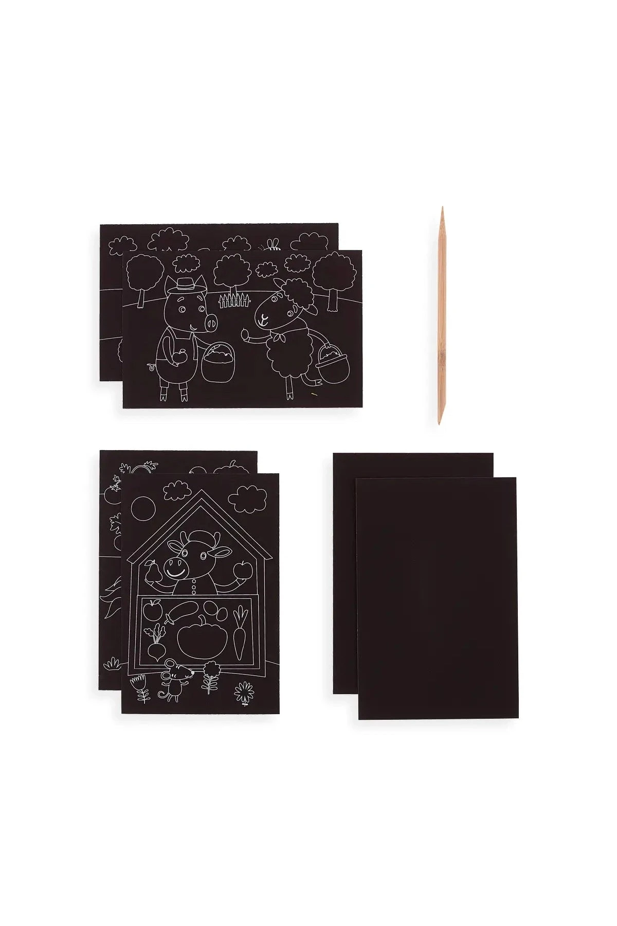 A travel sized activity kit your kid will love. Farm Animals, Scratch and Scribble mini scratch art kit has illustrated theme scratch art cards and blank ones too.