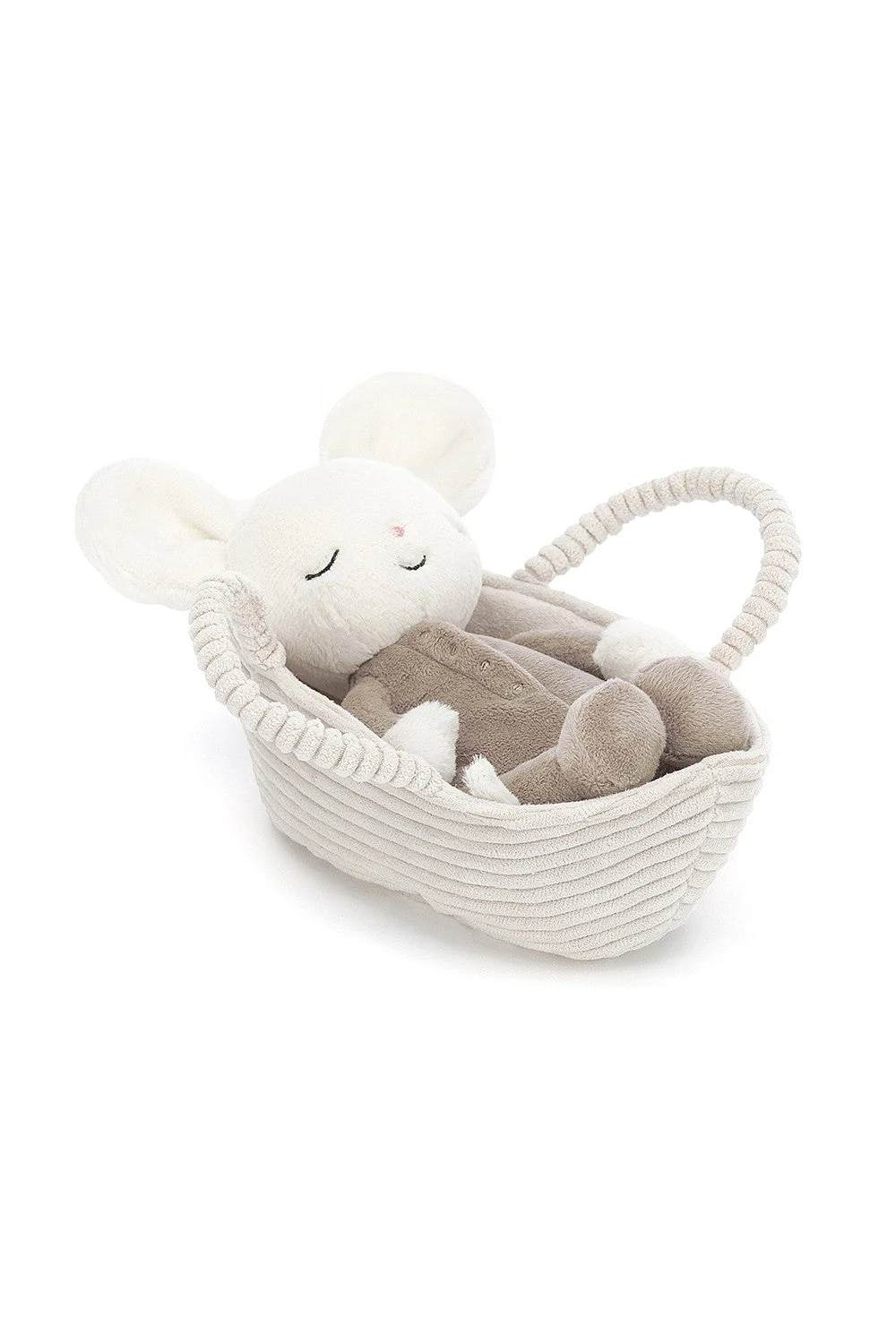 Tiptoe gently and whisper quietly so you don’t wake Rock-a-Bye Mouse. A precious pip, this tiny tot has petal ears, a peaceful face and a cosy cocoa onesie. Snoozing softly in a cream cordy basket, our mini mouse can be picked up and cuddled, then placed back down to carry on dreaming.