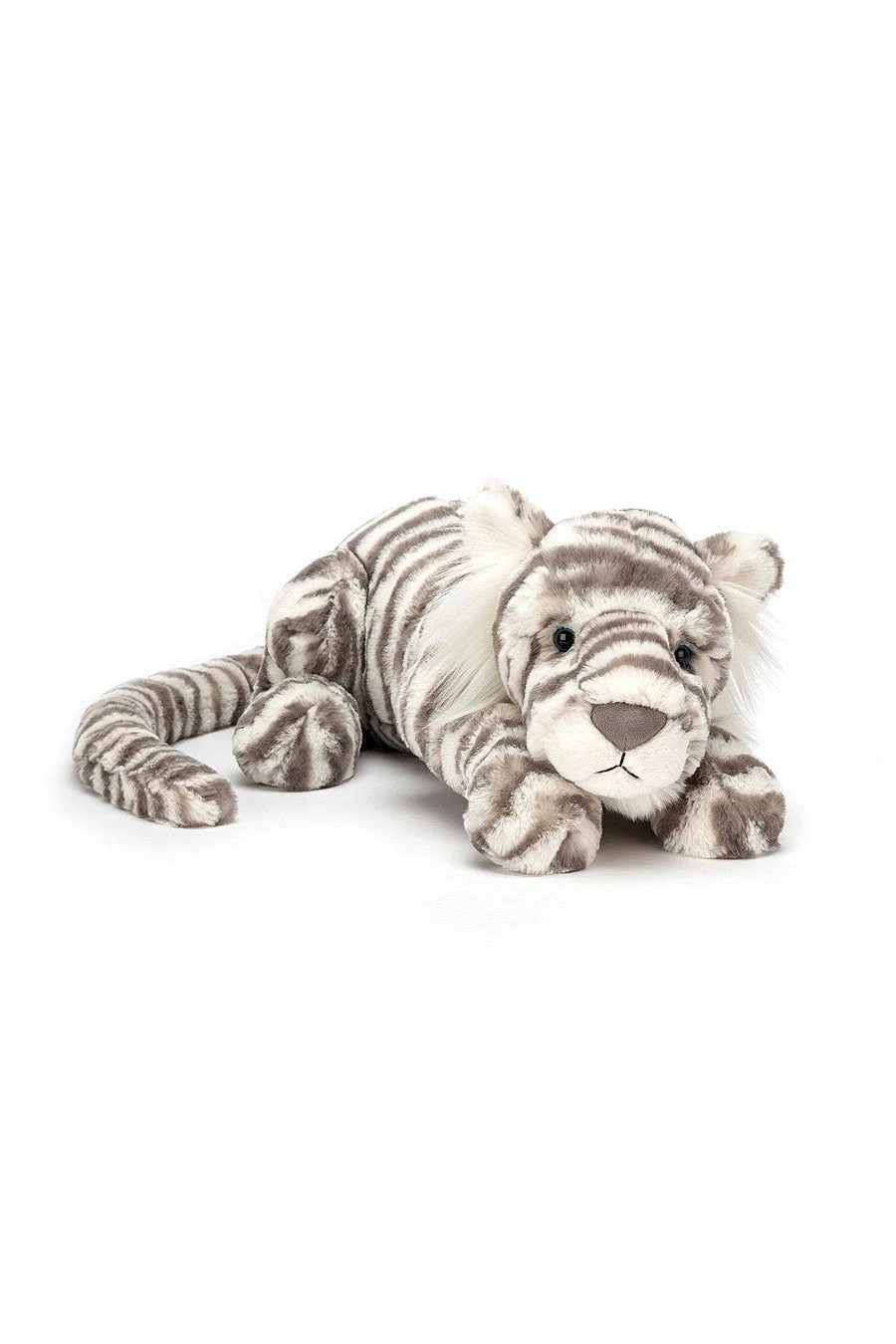 Sacha Snow Tiger is romping across the ice to meet you! With warm grey and creamy stripes, this scamp is warm against the winter. Our sweet snow tiger is wonderfully weighty, and actually hugs you when you go in for a snuggle. With a long squishy tail, silky whiskers and pouncy paws, Sacha is a snowball of fun!