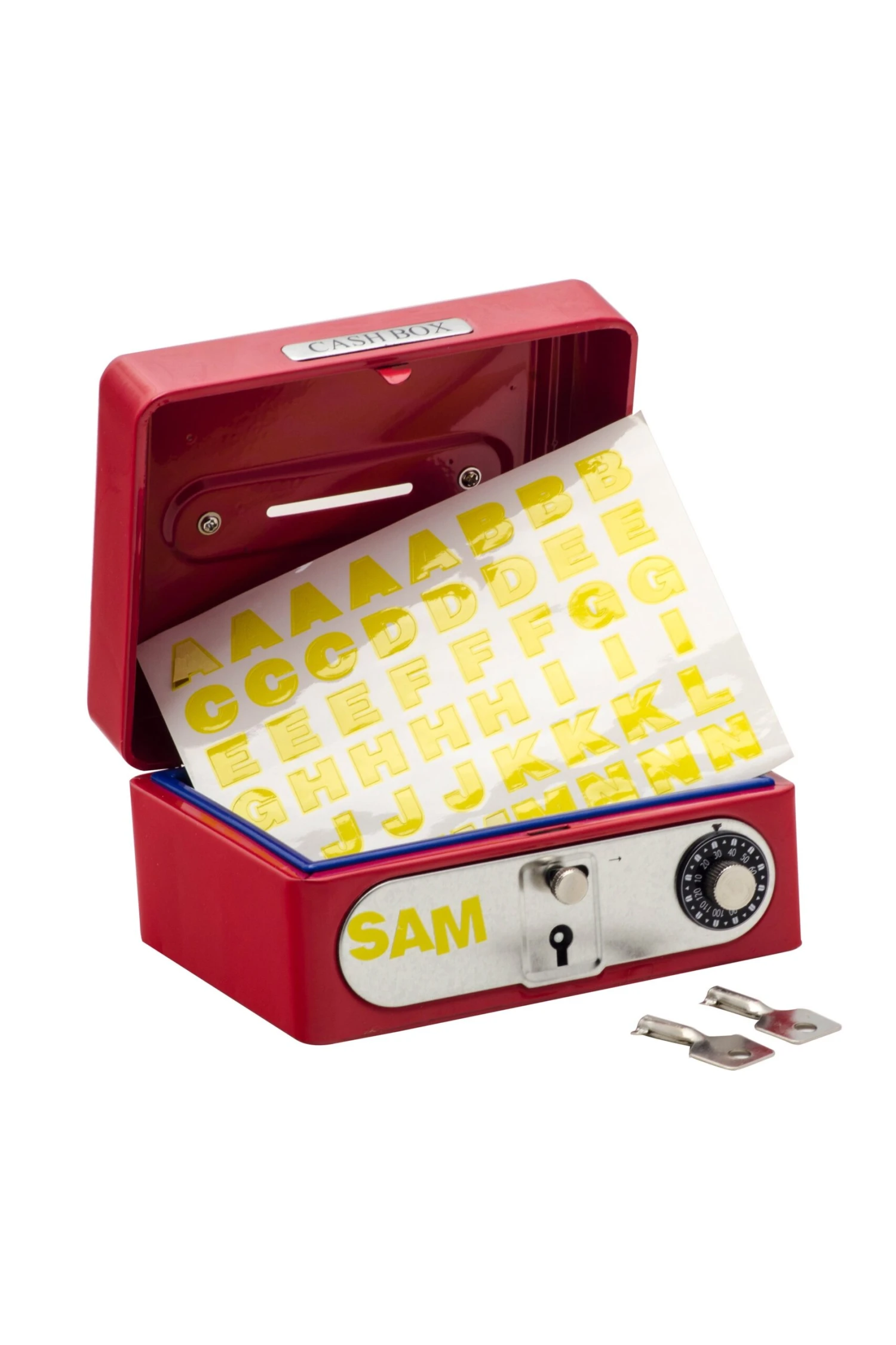 Store all your little treasures safely in this locking cash box. The box has a handle on top for easy transportation, and the lid opens with a hinge. There are two locks, one with a key and one with a combination, for extra security! Keep your precious chocolate bar and your hard-earned coins away from sticky fingers and prying eyes.