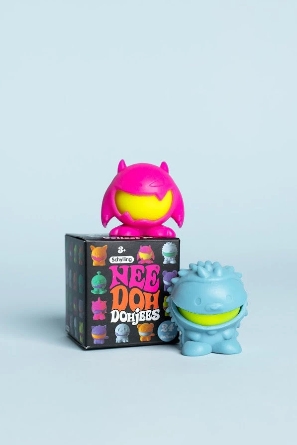Meet the new groovy glob crew! NeeDoh Dohjees are a lineup of little creatures that come with an irresistible squish. There is a whole world of Dohjees to explore with 24 to collect! Each Dohjee comes with a Teenie NeeDoh inside, just waiting to be squeezed, pulled, and mashed! Easily pop and swap your Teenie NeeDohs and create a whole new Dohjee to keep in your collection. Creatures include squishy monsters, cool cats, and so much more. Elevate your squish, and collect the entire Dohjee crew!