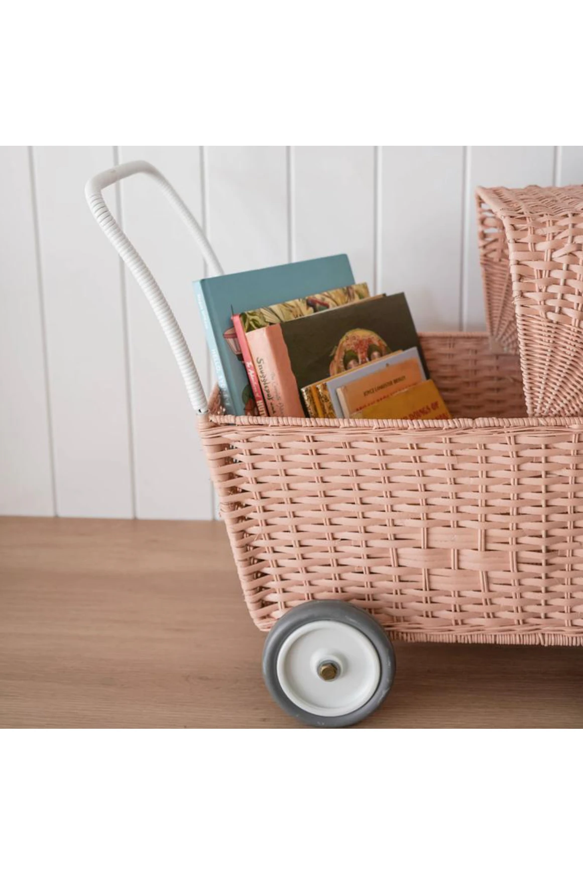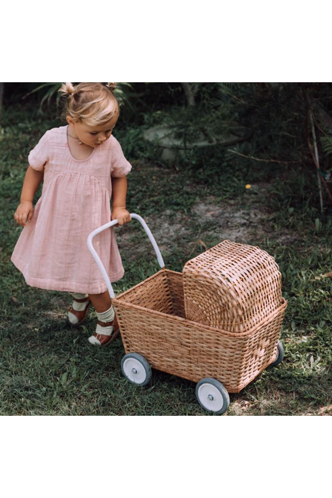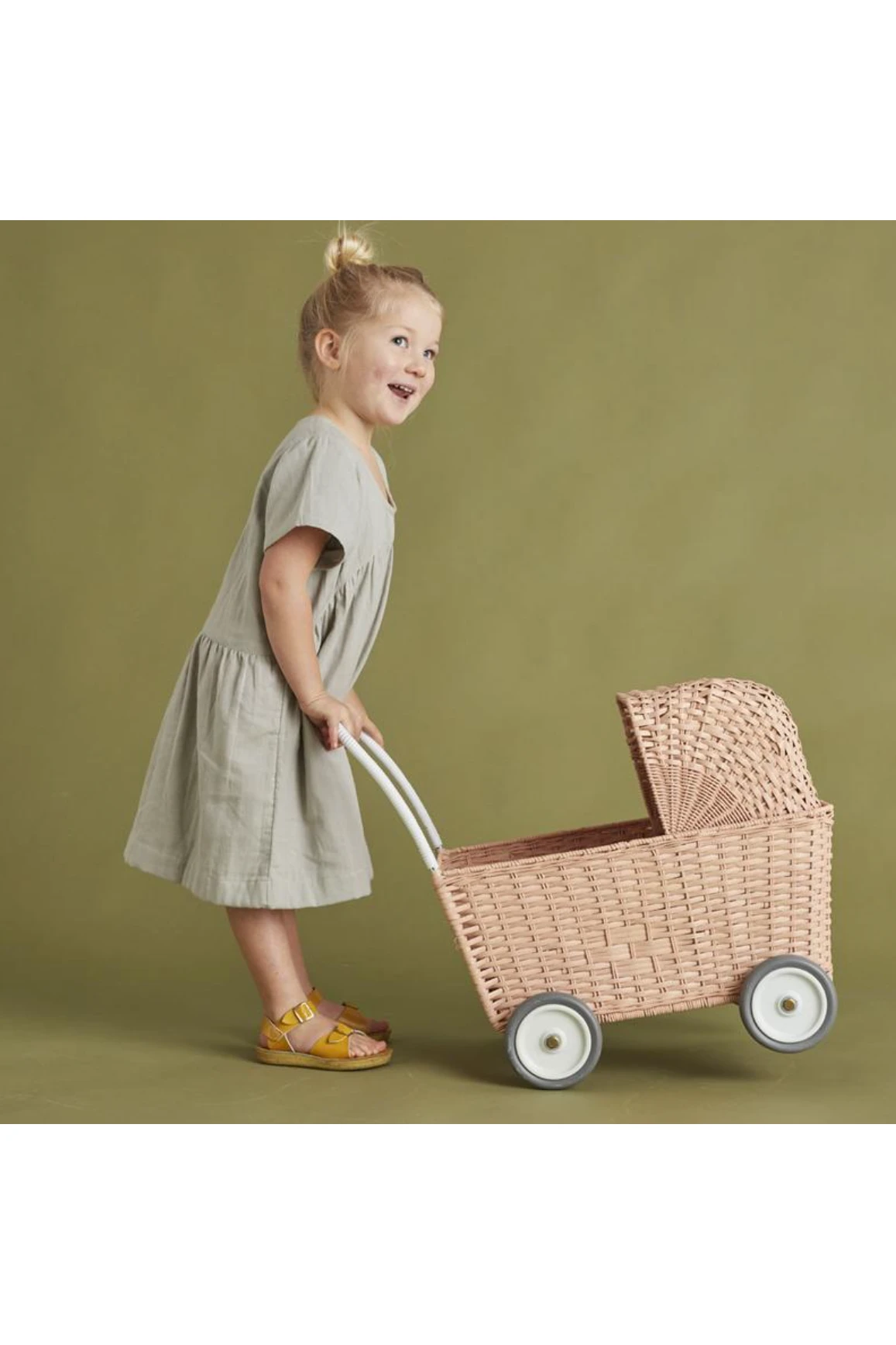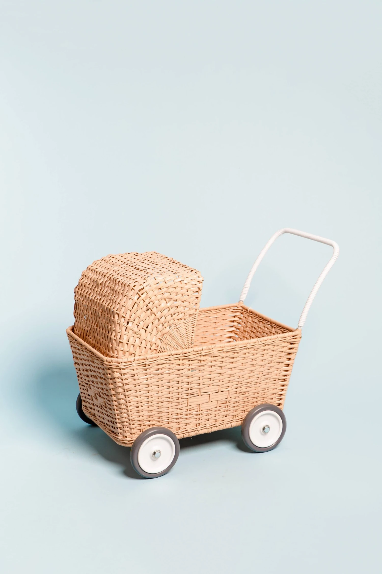 This convertible Strolley is a stroller with the lid on, and a cart with the lid lowered. With the Strolley mattress (sold separately), dolls will be cushioned and comfortable for walks inside the stroller. Take the mattress out and convert it to a cart for toting around favorite toys, or shopping with mom or dad at the farmer’s market.