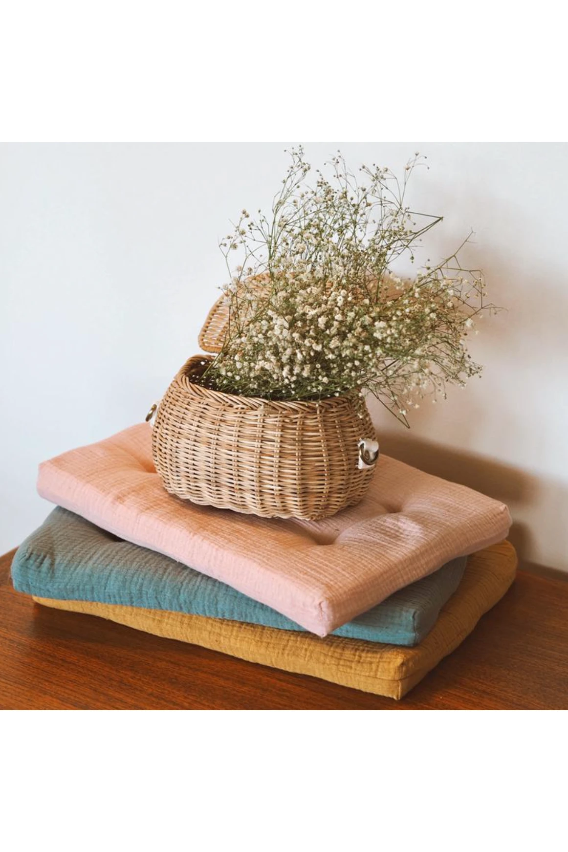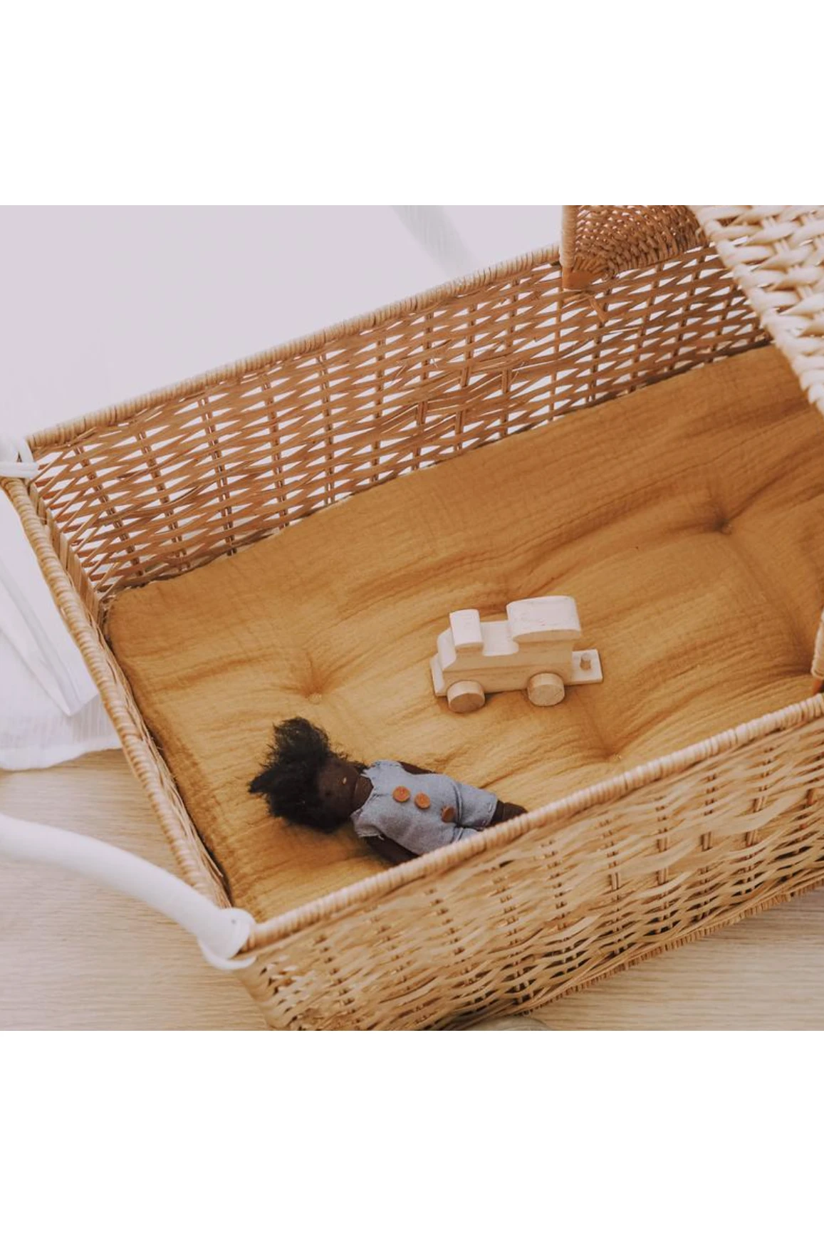 This soft cotton muslin cushion will keep dolls comfortable! Fits perfectly into the Olli Ella Strolley.